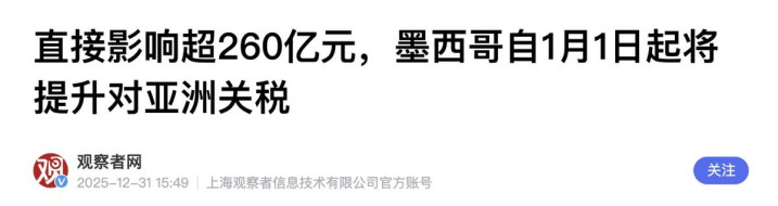 有意思的是,这税只定到年底。说明墨西哥也知道这事不能长久,先应付美国审查再说。但供应链一断,订单跑了,再想拉回来就没那么容易。